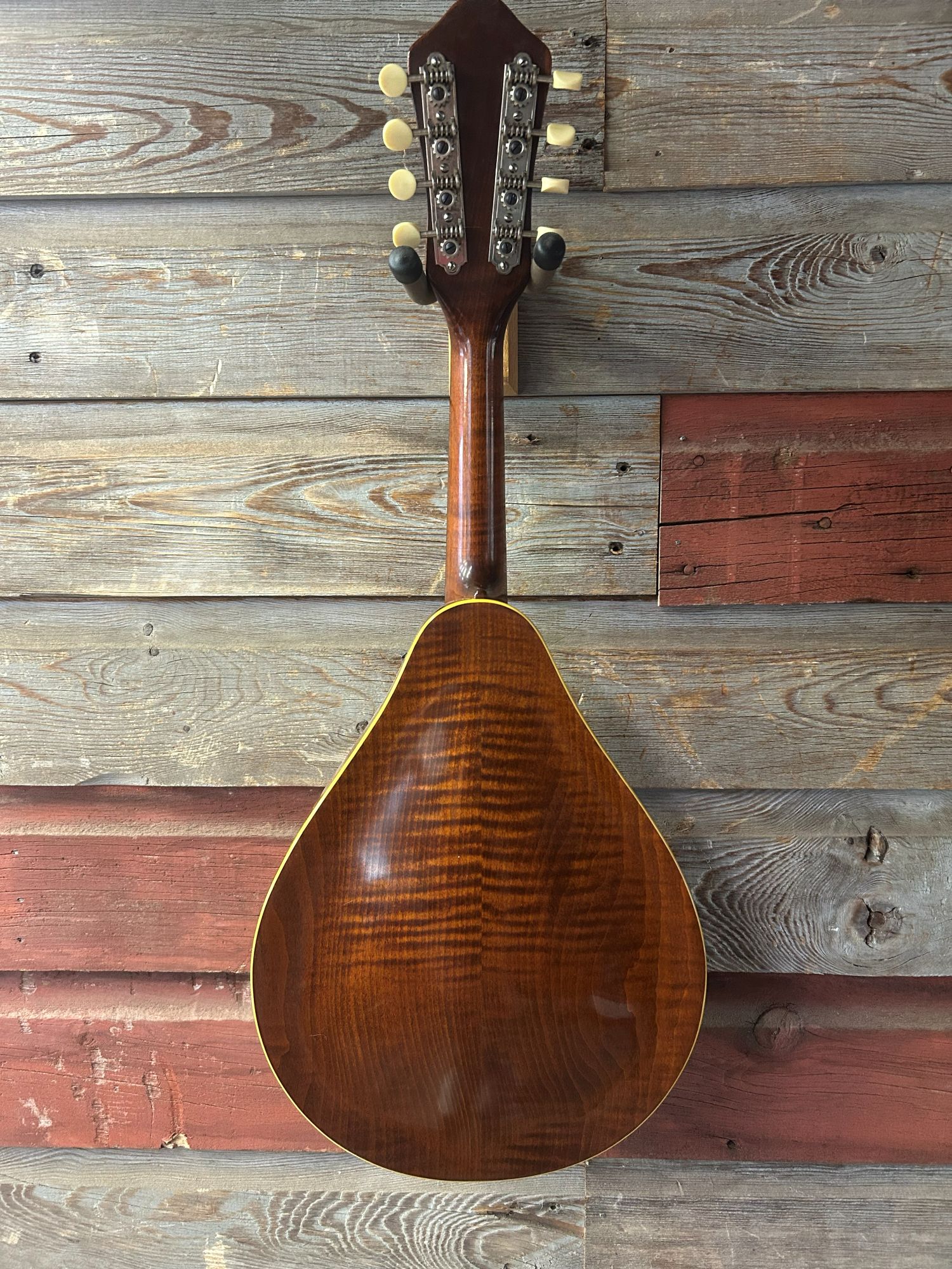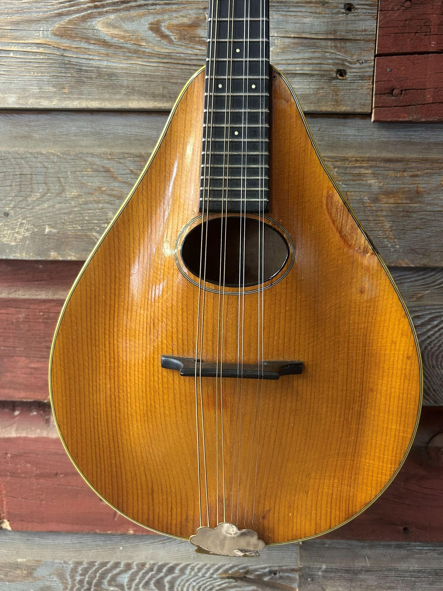 This mando is in great condition other than where the pickguard off-gassed and damaged the top binding.