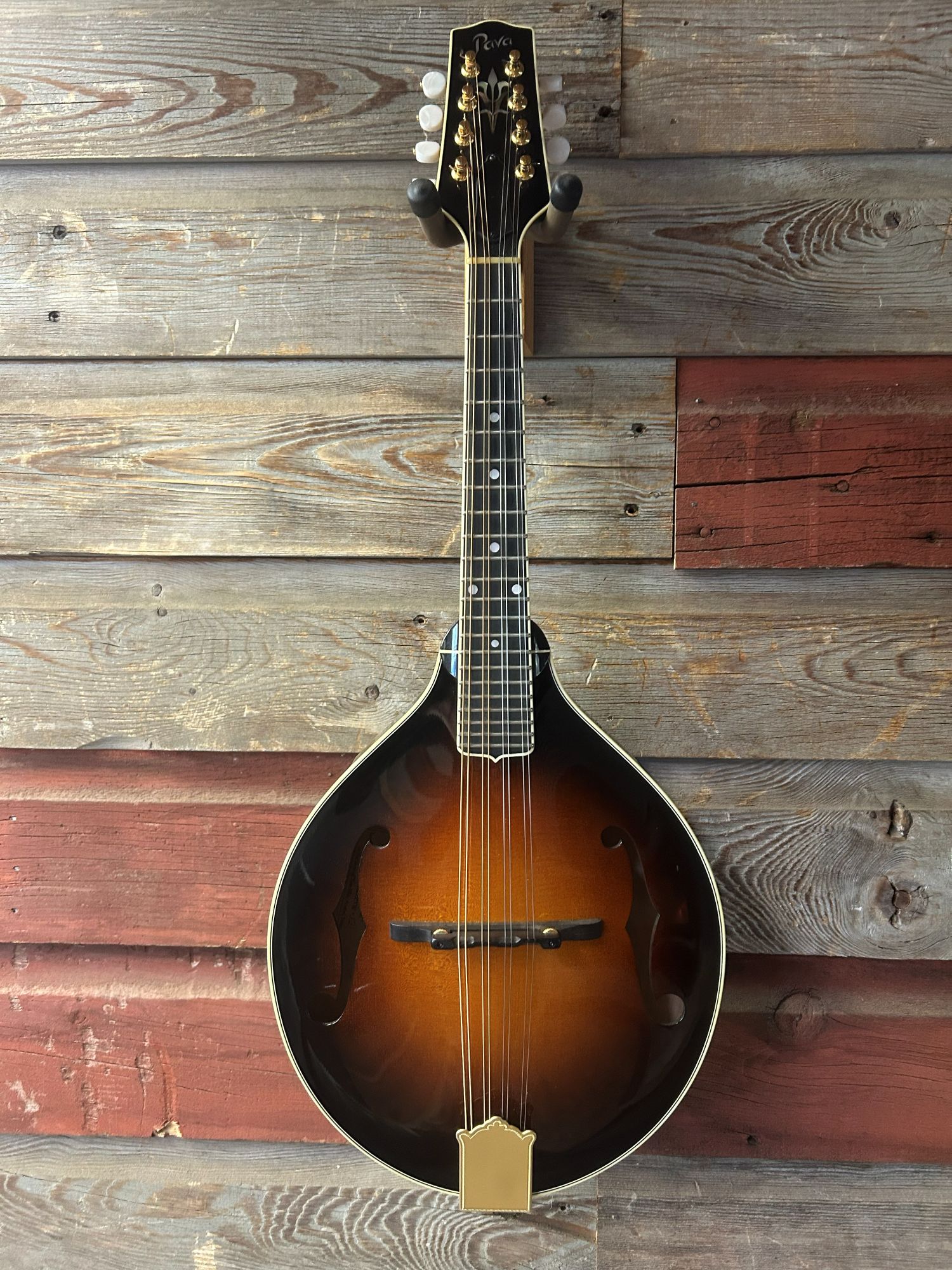 Bound ebony veneer with the ‘Pava’ logo in pearl and stylized pearl and abalone inlays. Bound and radiused ebony fingerboard with a 1-1/8” bone nut, pearl dot fret markers, and .080 frets.