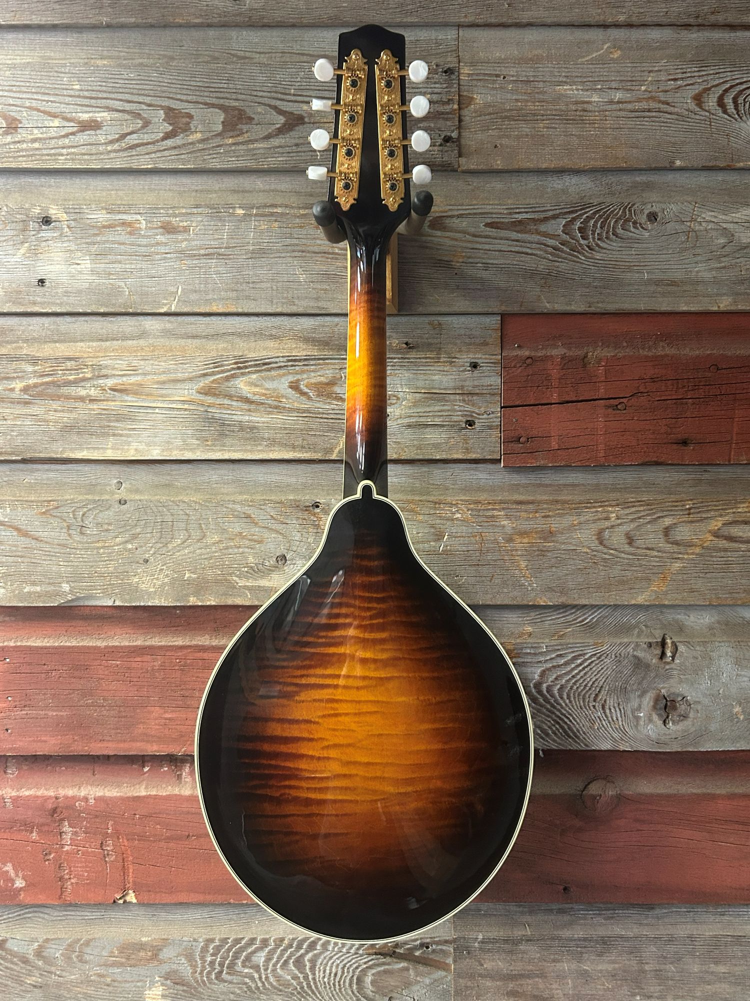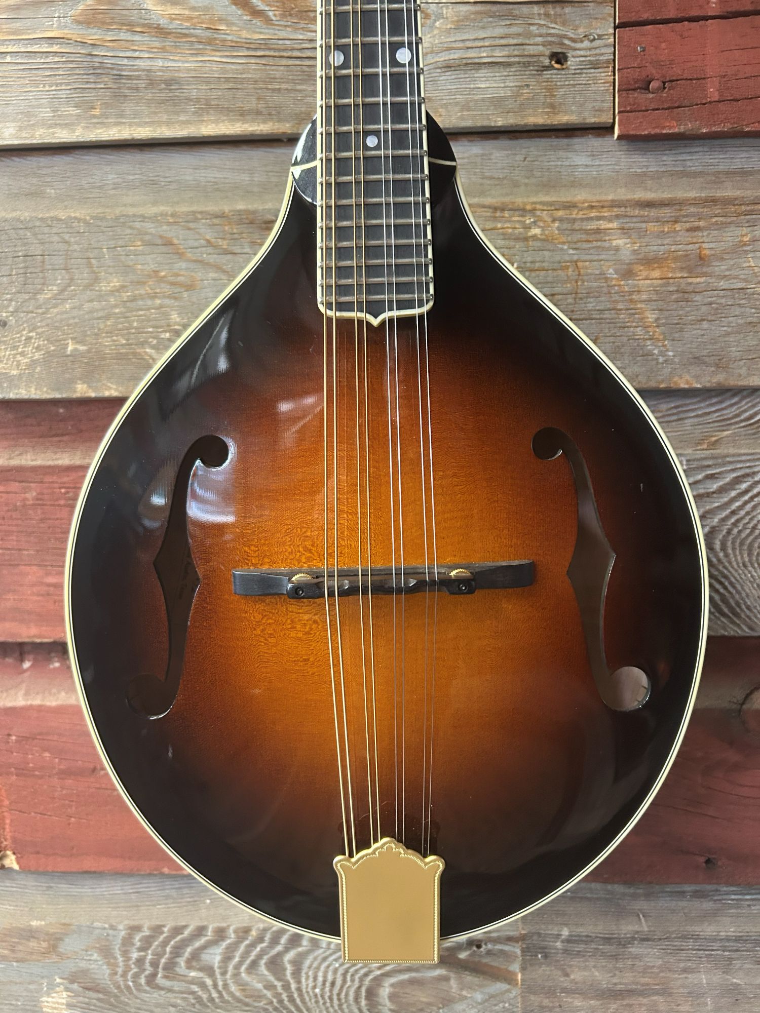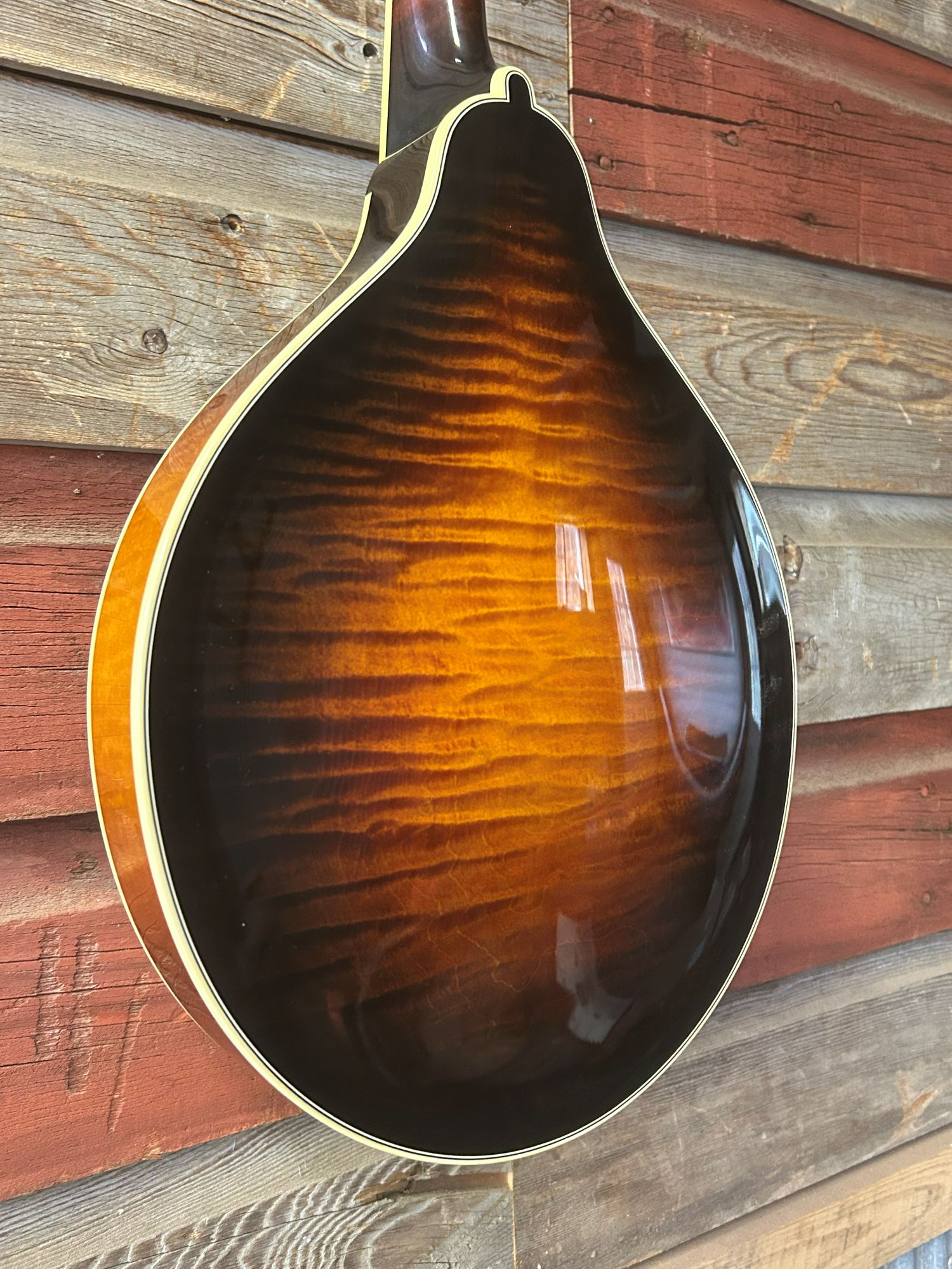 Triple line top and back body binding with a bound heel cap. Adjustable trussrod, adjustable ebony bridge, and James tailpiece. traditional burst color and gloss lacquer.